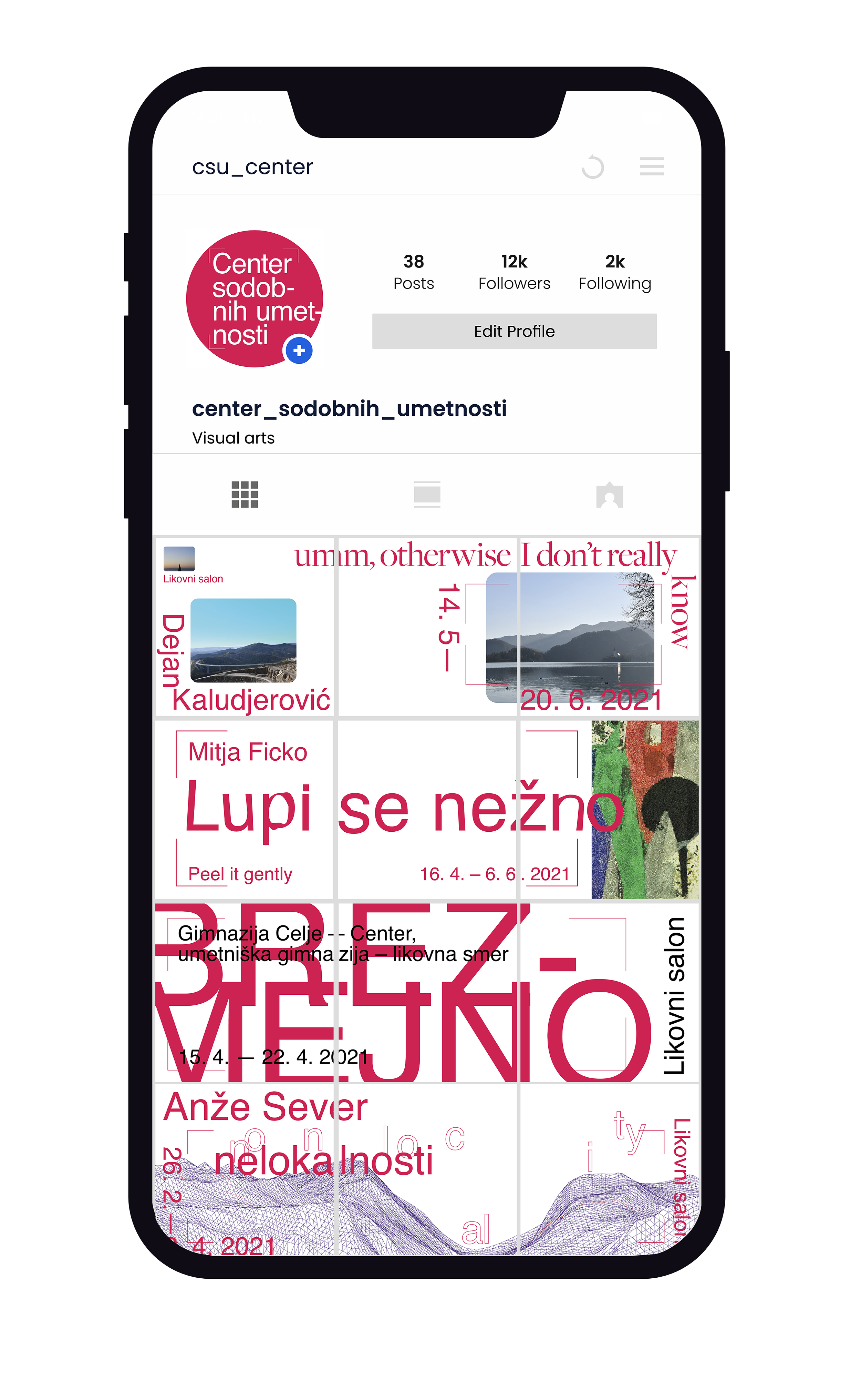 Vizualno podobo za Center sodobnih umetnosti Celje povezuje ključni element “kadriranja”, ki ponazarja njegovo glavno dejavnost - kuriranje umetnosti. Nosilna barva je bela in ima vlogo galerijskega prostora – da v ospredje postavi vsebino posamezne razstave.