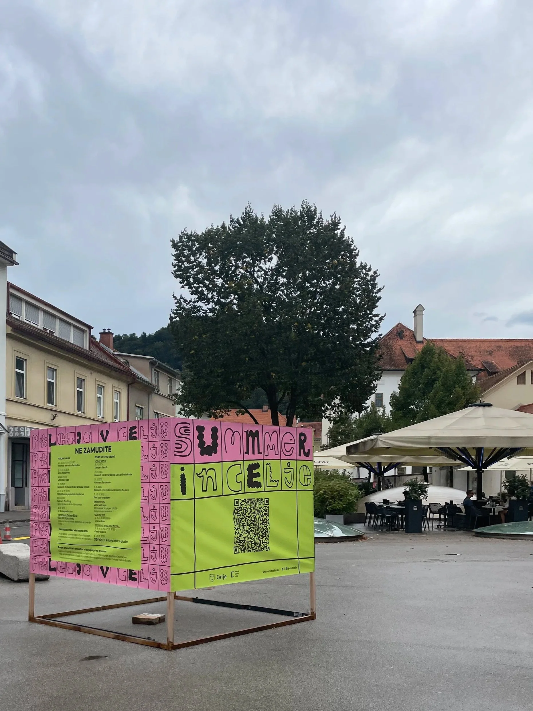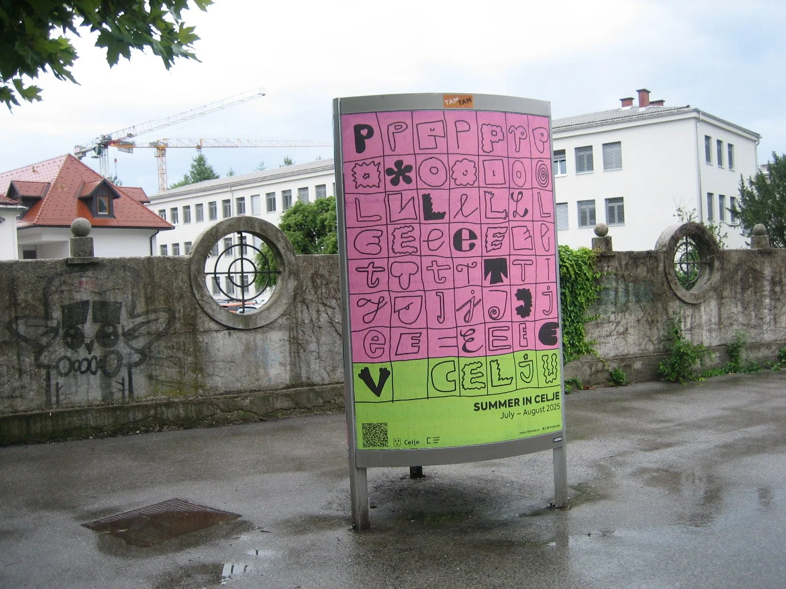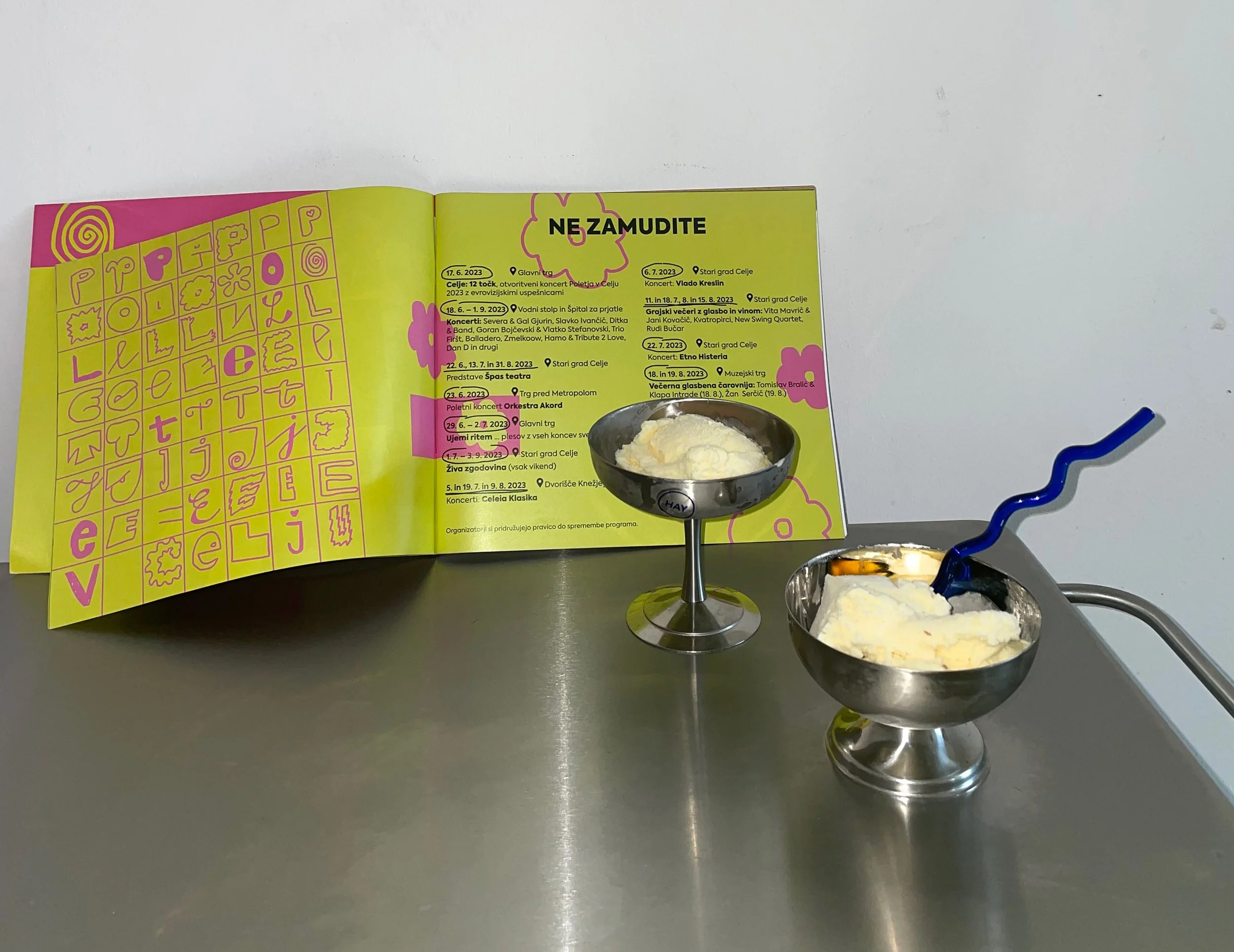 Vizualna podoba za festival Poletje v Celju sloni na igrivosti posameznih črk. Sproščenost poletja se odraža v napisu, barvna shema pa vsako leto izhaja iz sladoledne kombinacije.