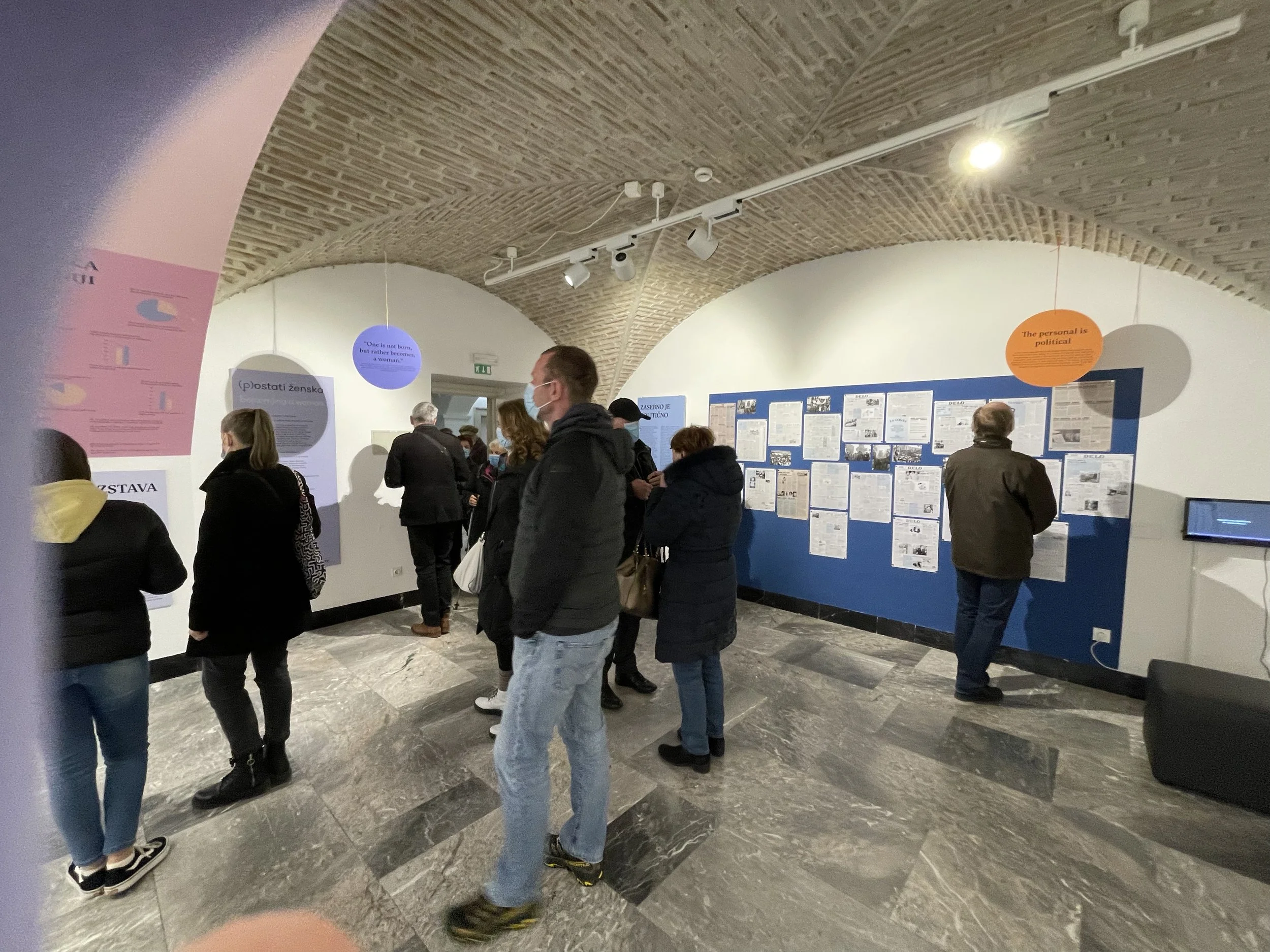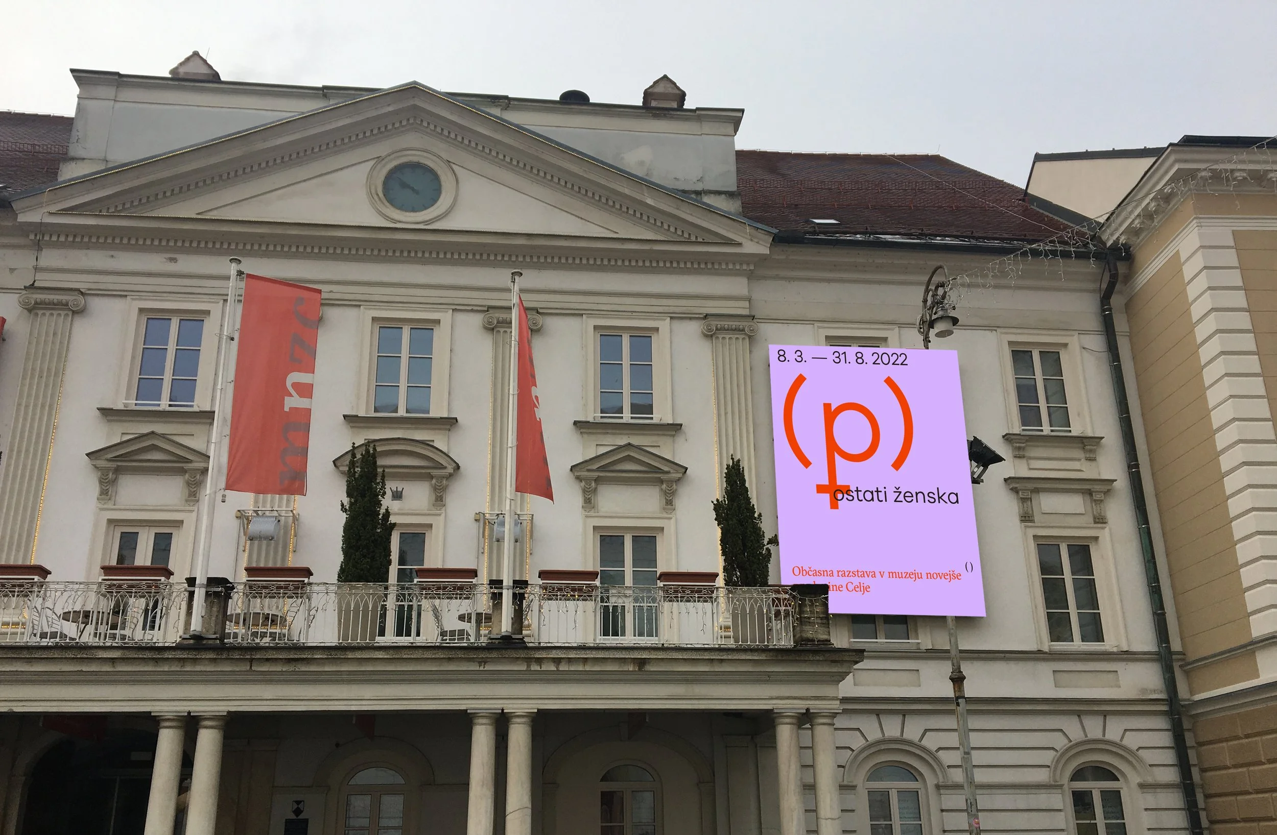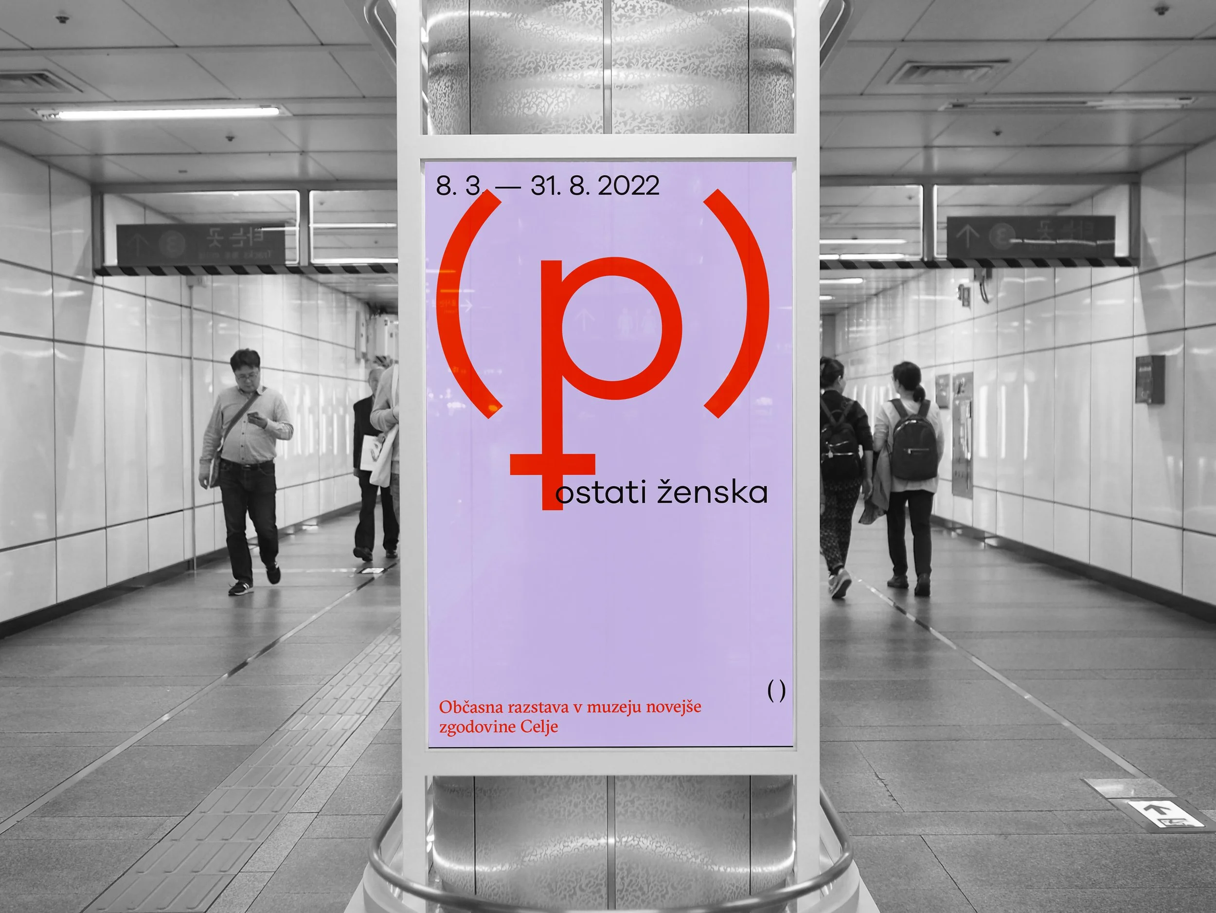 Razstava (p)ostati ženska je bila odprta 8.3.2022. Vsebina razstave je o vsaki izmed nas; o tem, kaj doživljamo, kako razmišljamo in kaj nas zaznamuje. Ideja vizualne podobe razstave izhaja iz simbola ženskega spola v črki p in oklepaja, ki vizualizira žensko spolovilo.