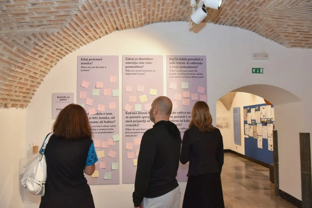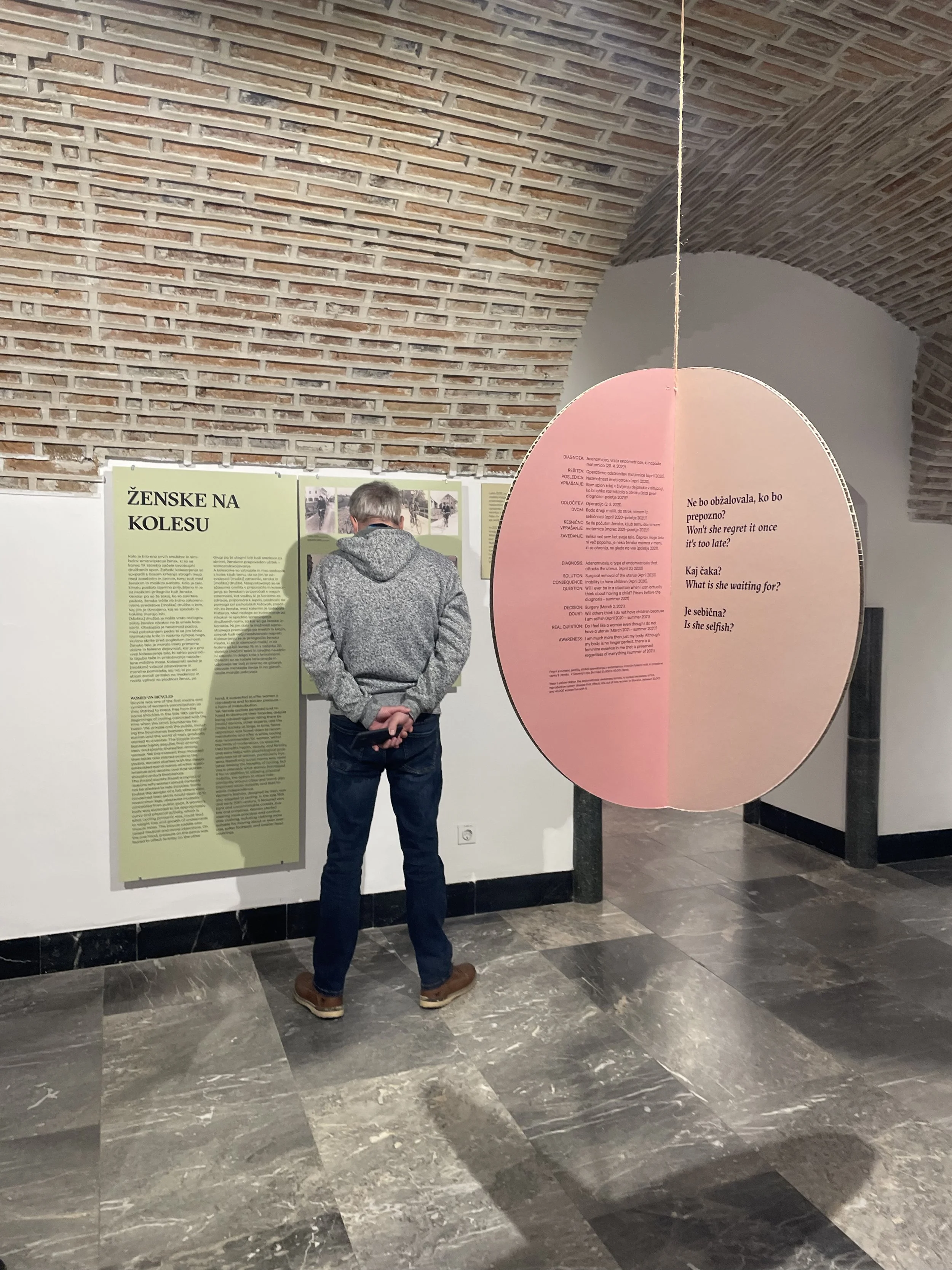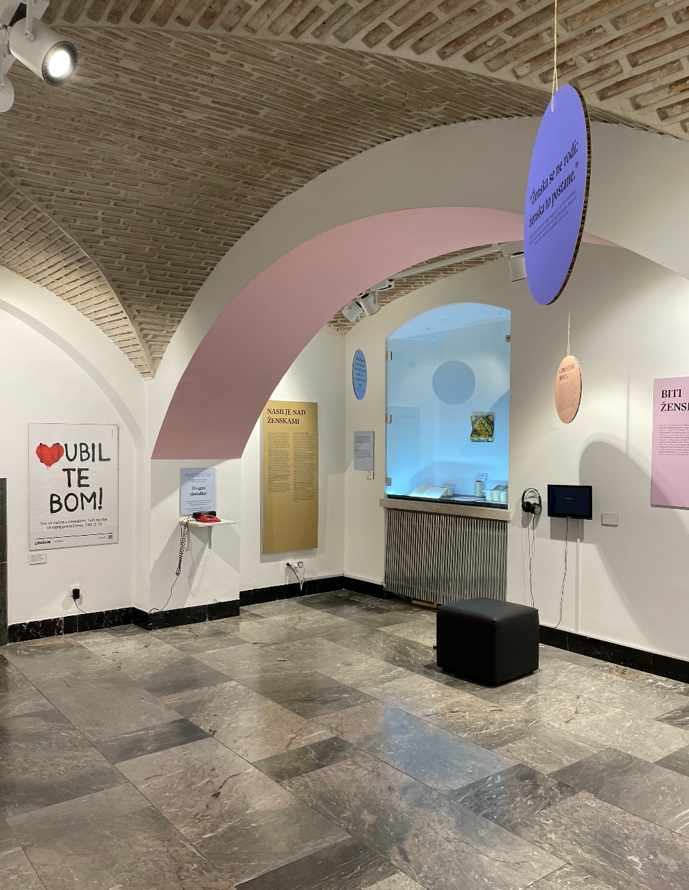 Razstava (p)ostati ženska je bila odprta 8.3.2022. Vsebina razstave je o vsaki izmed nas; o tem, kaj doživljamo, kako razmišljamo in kaj nas zaznamuje. Ideja vizualne podobe razstave izhaja iz simbola ženskega spola v črki p in oklepaja, ki vizualizira žensko spolovilo.